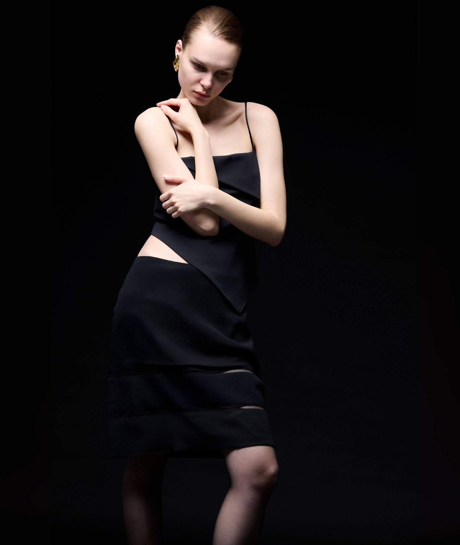Jil Sander'dan minimalizmin güçlü bir yorumuyla tasarlanmış, zamansız bir etek. Lüks ipek transparan kumaşı ve arkadan fermuarlı modeli sayesinde hem rahat hem de etkileyici. File şeklindeki iç astarının etek ucundaki panellerden detay olarak görünmesi son derece ince kurgulanmış bir silüet. İster gece ister gündüz her kombininde kendine kolayca yer bulabilecek bu zamansız etek tam bir joker parça.